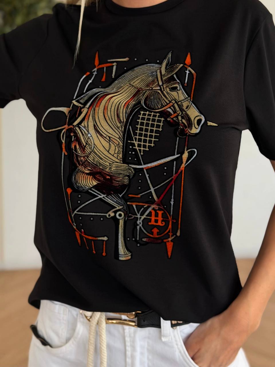 Чёрная женская футболка Hermes premium
