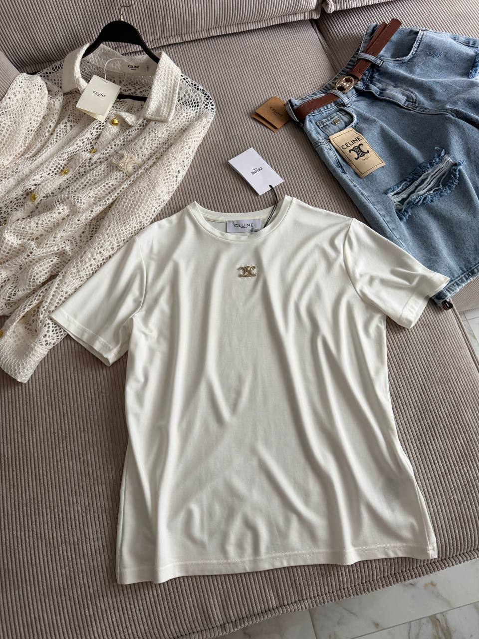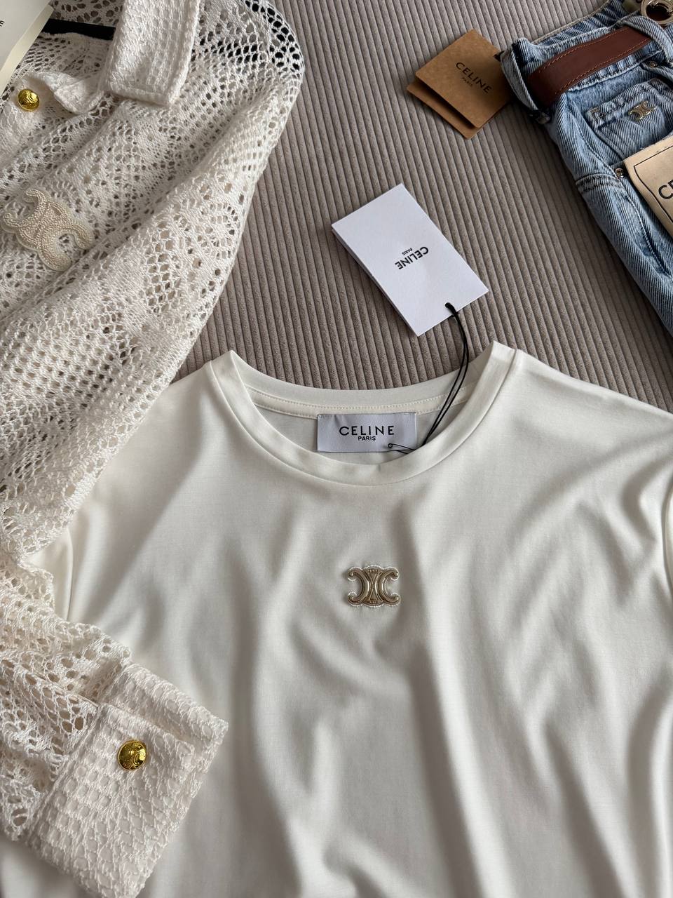 Женская белая футболка Celine premium