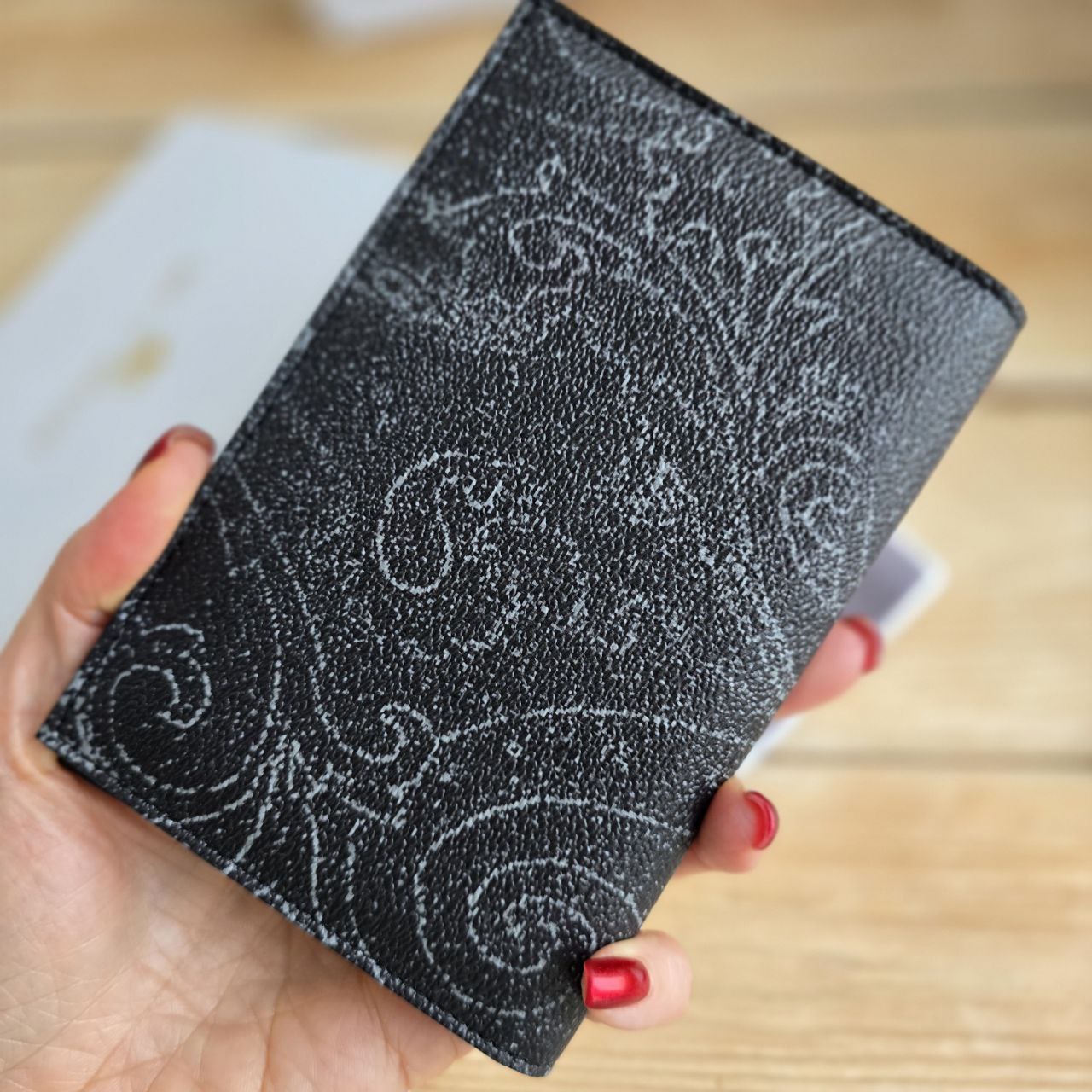 Кожаная обложка на паспорт Etro с узором пейсли 14х9.5 см